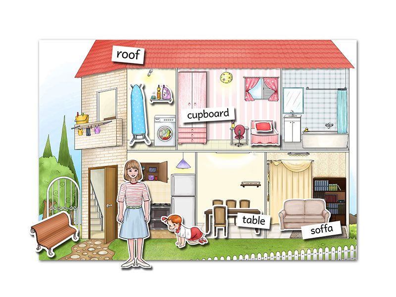 - Attachable/removable cards containing house-related words and concepts.